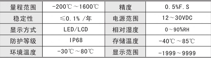 測(cè)量溫度范圍寬